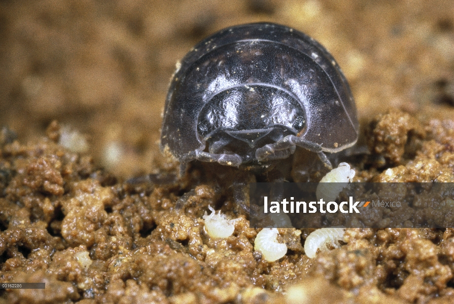 Joven llamado manca y Tenebrio (Armadillidium vulgare) madre comunes recientemente salido de la bols