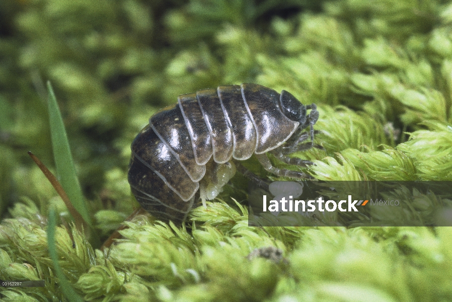 Común Tenebrio (Armadillidium vulgare) alimentándose de hojas, distribución en todo el mundo