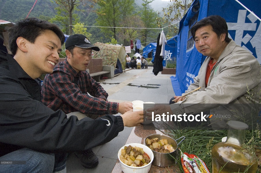 Trabajadores ser inmunizados en refugios temporales tras el terremoto de 12 de mayo de 2008 y desliz